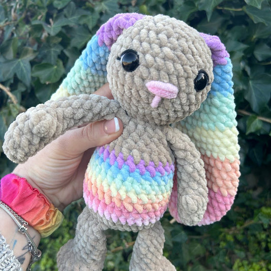 Crochet PATTERN: Rosie the Rainbow Bunny, LOW SEW (English)
